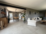 Superbe pièce de vie lumineuse de plus de 40 m², ouverte sur une terrasse exposée sud-ouest de 12 m², équipée de stores et offrant une vue dégagée