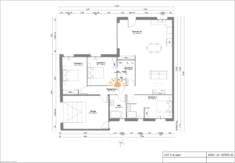 • 3 chambres confortables, adaptées aux besoins de toute la famille. • Cuisine ouverte sur un séjour baigné de lumière naturelle, pour des moments conviviaux.