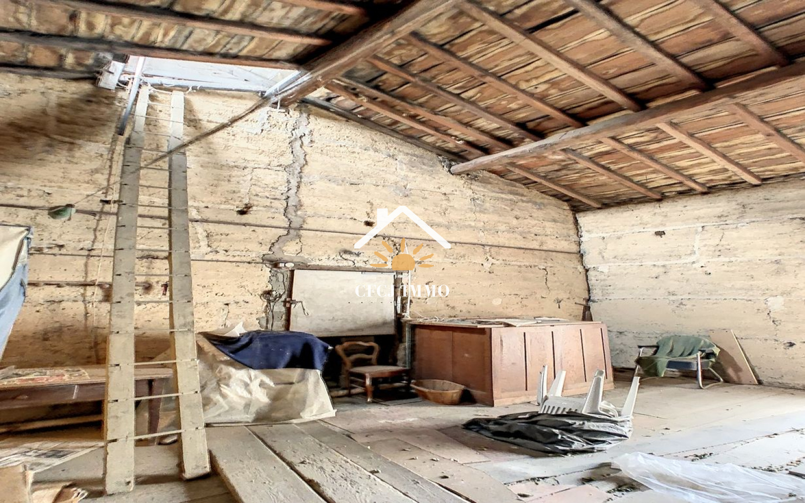 Vous bénéficierez d'un espace vie, cuisine, 2 chambres ainsi qu'un grenier aménagable vous offrant de nombreuses possibilités d'aménagement.
